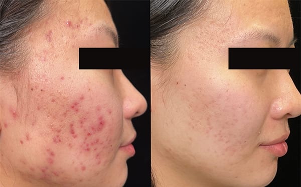 Results vary by individual. In a clinical study of 104 patients, 80% experienced at least 50% acne reduction within three months of their final treatment. After six months, that number rose to 87%, and 92% in one year.